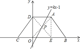 分析:首先过A作AE⊥BC于E,连接OA、DE交于点P,由四边形ABCD是等腰梯形,易证得Rt△COD≌Rt△BEA,即可得S△COD=S△BEA,又易证得四边形ADOE是矩形,由P为矩形ADOE的对称中心,则过P点的直线平分矩形ADOE的面积,可得一次函数y=kx-1的图象经过点P,又由A(4,2),可求得点P的坐标,继而求得答案.