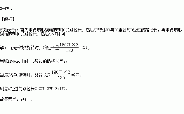 (2015秋•惠山区期末)如图,扇形OMN与正方形ABCD,半径OM与边AB重合,弧MN的长等于AB的长,已知AB=2,扇形OMN沿着正方形ABCD逆时针滚动到点O首次与正方形的某顶点重合时停止,则点O经过的路径长 .