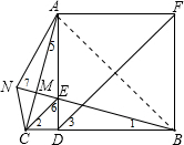 分析 判断①:由根据正方形的性质得到AD=DB,∠3=45°,再CE∥DF得到∠2=∠3=45°,则CD=ED,接着证明△DBE≌△DAC得到∠1=∠5,然后根据三角形内角和定理易得∠AME=∠BDE=90°,所以AC⊥BN;