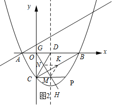 (2)设直线CE的解析式为y=mx-$\sqrt{3}$,将点E的坐标代入求得m的值,从而得到直线CE的解析式,过点P作PF∥y轴,交CE与点F.设点P的坐标为(x,$\frac{{\sqrt{3}}}{3}$x2-$\frac{{2\sqrt{3}}}{3}$x-$\sqrt{3}$),则点F(x,$\frac{2\sqrt{3}}{3}$x-$\sqrt{3}$),则FP=$-\frac{\sqrt{3}}{3}$x2+$\frac{4\sqrt{3}}{3}$x.由三角形的面积公式得到△EPC的面积=-$\frac{2\sqrt{3}}{3}$x2+$\frac{8\sqrt{3}}{3}$x,利用二次函数的性质可求得x的值,从而得到点P的坐标,作点K关于CD和CP的对称点G、H,连接G、H交CD和CP与N、M.然后利用轴对称的性质可得到点G和点H的坐标,当点O、N、M、H在条直线上时,KM+MN+NK有最小值,最小值=GH;