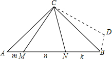 解答 证明:设:AM=m,MN=n,NB=k,