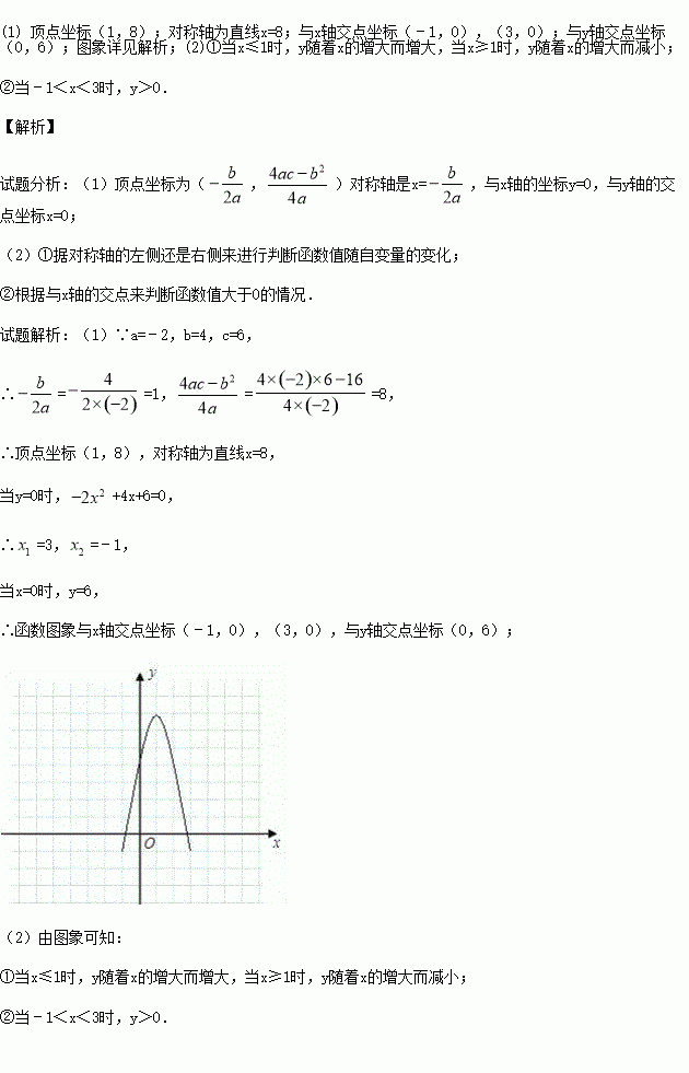 (1)求出该函数图象的顶点坐标,对称轴,图象与x轴、y轴的交点坐标,并在下面的网格中画出这个函数的大致图象;