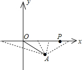 解:如上图:①OA为等腰三角形底边,符合符合条件的动点P有一个,即($\frac{\sqrt{11}}{2}$,0);