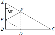18、如图,在Rt△ABC中,∠A=60°,点E,F分别在AB,AC上,沿EF对折,使点A落在BC上的点D处,且FD⊥BC.