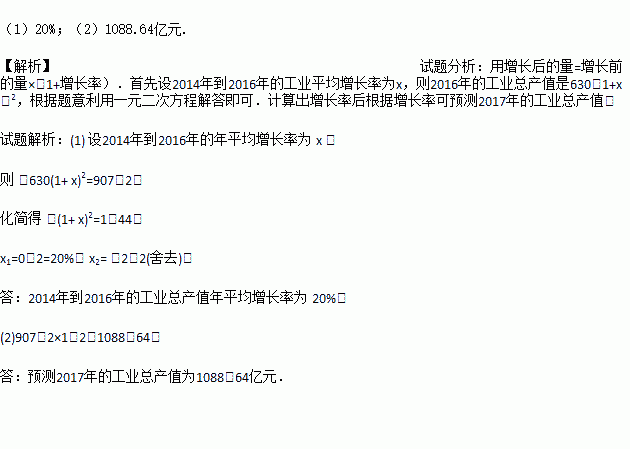 (1)那么2014年到2016年的工业总产值年平均增长率是多少?