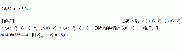 如下图,弹性小球从点P(0,3)出发,沿所示方向运动,每当小球碰到矩形OABC的边时反弹,反弹时反射角等于入射角,当小球第1次碰到矩形的边时,记为点P1,第2次碰到矩形的边时,记为点P2,………第n次碰到矩形的边时,记为点Pn,则点P3的坐标是_______________;点P2017的坐标是_____________.