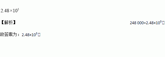 今年4月上旬广西柳州市区248000株洋紫荆树进入盛花期,吸引许多民众驻足观赏。将数248000用科学记数法表示为________________.