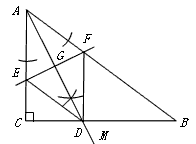 | 解:(1)作图正确, 写出结论:射线AM就是所要求的角平分线; |