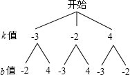 (2)画出树状图,由二次函数y=a(x-k)2+b的图象顶点在双曲线y=-$\frac{8}{x}$上的情况,再根据概率的求解方法计算即可得解.