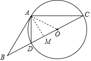 分析 连接OA,过A作AM⊥BC于M,求出∠BAD=∠ACO,解直角三角形求出AO、BO、求出AB,根据三角形面积公式求出AM,求出OM,解直角三角形求出即可.