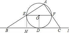 (2)连接OD,过E作EH⊥BC,可知四边形EODH为正方形,在Rt△BEH中,可求得tan∠ABC.