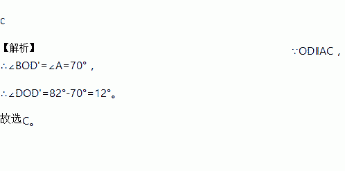 如图,∠A=70°,O是AB上一点,直线OD与AB所夹的∠BOD=82°,要使OD∥AC,直线OD绕点O按逆时针方向至少旋转( )