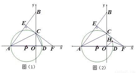 ),AC平分∠OAB,交y轴于点C,点P是x轴上一点,⊙P经过点A、C,与x轴于点D,过点C作CE⊥AB,垂足为E,EC的延长线交x轴于点F,