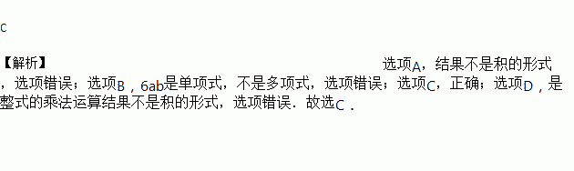 A. x2-9+6x=(x+3)(x-3)+6x B. 6ab=2a·3b