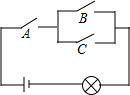 如图,电路图上有三个开关A、B、C和一个小灯泡,当电路是通路时都可使灯泡发光.任意闭合其中两个开关,则小灯泡发光的概率等于