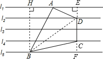 (3)过D点作DC⊥l5于F,连接BD,根据四边形ABCD的面积=S△ABD+S△BCD.列式计算即可求解.