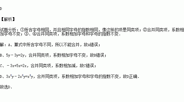 B.5y﹣3y=2