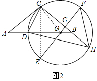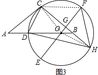 (3)连接OC、OH、CF,根据EF⊥CH得到$\widehat{CF}=\widehat{FH}$,从而得到∠COH=2∠COF,在Rt△COG中,∠CGO=90°,CG=4,得到OG=$\frac{7}{6}$,然后利用勾股定理得到CO,利用勾股定理得到FH=CF=$\sqrt{{3}^{2}+{4}^{2}}$=5.