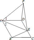 分析 (1)根据平行四边形、菱形、等边三角形的性质得到AP=AE,∠PAE=60°,∠PAE=∠DAB,∠1=∠2,从而得到全等三角形;