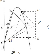 ④以点N为直角顶点且N在y轴右侧时,作辅助线,如图5,![]()