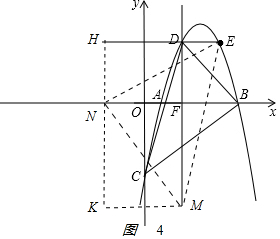 ③以点N为直角顶点且N在y轴左侧时,如图4,CN=MN,∠MNC=90°,作辅助线,![]()