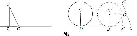 (2)如图2,△ABC从开始移动,到它的边与圆最后一次相切,即△ABC平移到△A′B′C′的位置,A′B′与⊙相切,作O′Q⊥A′B′于Q,