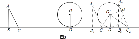 (3)当△ABC平移到△A1B1C1的位置,A1C1与⊙O相切,d=1,如图3,由(1)得C1D=