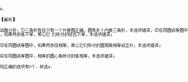 ①三角形有且只有一个外接圆,圆有且只有一个内接三角形;
