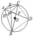 分析 连结PC、DC、BD,作PF⊥BC于F,PE⊥AC于E,PH⊥AB于H,根据内心的性质得∠ACP=∠BCP,根据圆周角定理由BC为直径得到∠BAC=90°,而AD平分∠BAC,则∠BAD=∠CAD=$\frac{1}{2}$∠BAC=45°,推出①成立,再次根据圆周角定理得到∠DBC=∠BCD=45°,于是可判断△BDC为等腰直角三角形,则BC=$\sqrt{2}$DC,然后利用三角形外角性质证明∠DPC=∠DCP得到DC=DP,推出②不成立,所以有BC=$\sqrt{2}$DP,推出③成立,由DP=5 $\sqrt{2}$得到BC=10,根据勾股定理计算出AC=6,根据切线长定理可计算出△ABC的内切圆半径为r=2,由此即可求出△APC的面积,即可判断④成立.