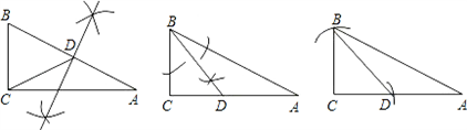如图,Rt△ABC中,∠ACB=90°,∠CAB=30°,用圆规和直尺作图,用两种方法把它分成两个三角形,且要求其中一个三角形是等腰三角形.(保留作图痕迹,不要求写作法和证明)