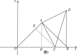 分析 (1)如图1,过A作AH⊥OB于H,根据等腰直角三角形的性质得到OH=AH=BH,由A的坐标为(4,4),于是得到AH=OH=4,求得OB=2AH=8,即可得到结论;