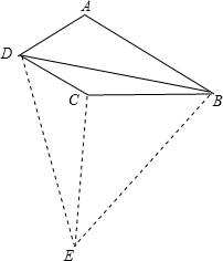 分析:将△ADB以D为旋转中心,顺时针旋转60°,使A与C点重合,B与E点重合,连接BE,根据旋转的性质得∴∠ABD=∠CED,∠A=∠ECD,AB=CE,DB=DE,易得△DBE为等边三角形,则DB=BE,根据周角的定义和四边形内角和定理得∠ECB=360°-∠BCD-∠DCE=360°-∠BCD-∠A=360°-(360°-∠ADC-∠ABC)=60°+30°=90°,则△ECB为直角三角形,根据勾股定理得EC