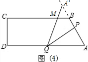(3)QA′交BC于M,如图(4),先计算出梯形ABCD的面积,分类讨论:当0≤t≤2时,$\frac{\sqrt{3}}{2}$t2=$\frac{1}{4}$•14$\sqrt{3}$,当2<t≤4时,-$\frac{\sqrt{3}}{2}$t2+4$\sqrt{3}$t-4$\sqrt{3}$=$\frac{1}{4}$•14$\sqrt{3}$,然后分别解方程求出满足条件的t的值.