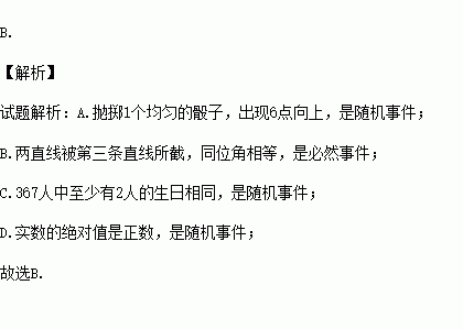 A.抛掷1个均匀的骰子,出现6点向上 B.两直线被第三条直线所截,同位角相等