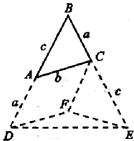 解答:证明:延长BA到D,使AD=BC=a,延长BC到E,使CE=AB=c,连接DE,