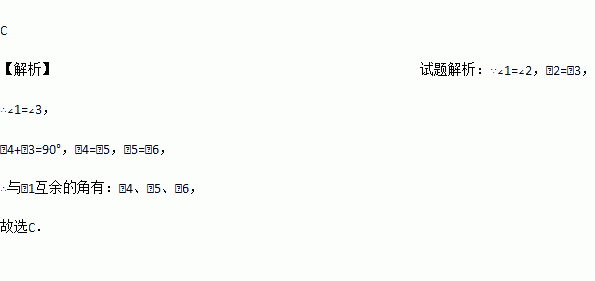 将三角板与直尺按如图所示的方式叠放在一起(其中∠3≠∠4).在图中标记的角中,与∠1互余的角共有( )