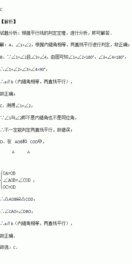 以下四种沿AB折叠的方法中,不一定能判定纸带两条边线a,b互相平行的是( )