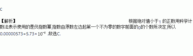A. 0.573×10﹣5 B. 5.73×10﹣5 C. 5.73×10﹣6 D. 0.573×10﹣6