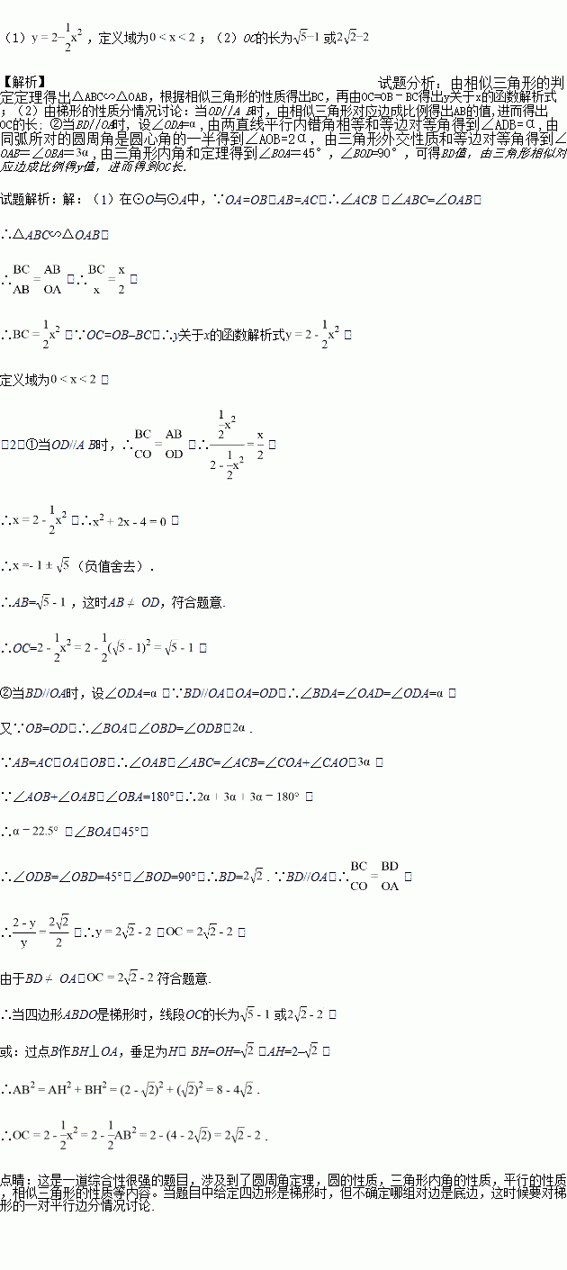 (2)当四边形ABDO是梯形时,求线段OC的长.
