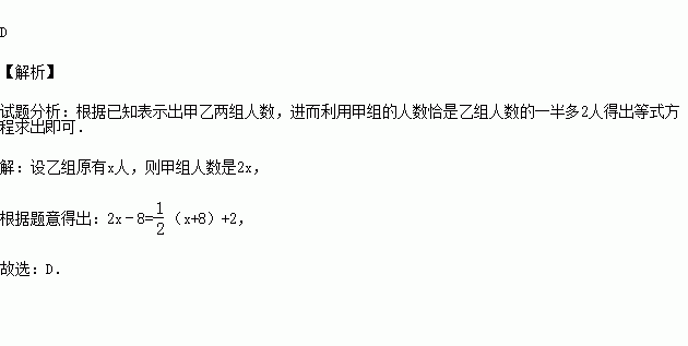 (2014秋•高密市期末)甲组人数是乙组人数的2倍,从甲组抽调8人到乙组,这时甲组剩下的人数恰好是乙组现有人数的一半多2.设乙组原有x人,则可列方程( )