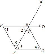 分析:(1)由在△ABC中,∠ACB=90°,点E为AB的中点,可得CE=AE=BE,又由AF=CE,可得CE=AE=BE=AF,继而可证得∠5=∠6,即可判定AF∥CE,则可得四边形ACEF是平行四边形;
