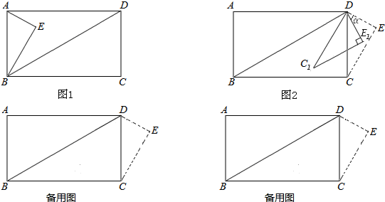 (3)如图2,当△ABE停止移动时得到△DCE,将△DCE绕点D按顺时针方向旋转α(0°<α≤180°)角度,在旋转过程中,C的对应点为C1,E的对应点为E1,设直线C1E1与直线BC交于点M、与直线BD交于点N.是否存在这样的α,使得△BMN为等腰三角形?若存在,求出α的度数;若不存在,请说明理由.