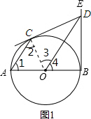分析:(1)如图1,连接OD.欲证明CD是⊙O的切线,只需证明CD⊥OD;