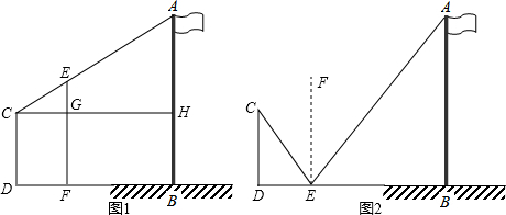 ②人CD站在一个适当的位置:通过标杆的顶部E,刚好看到旗杆的顶部A,