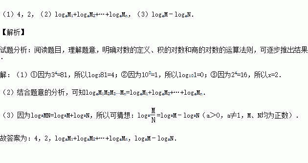 logaM1M2M3…Mn= (其中M1、M2、M3…、Mn均为正数a>0,a≠1)