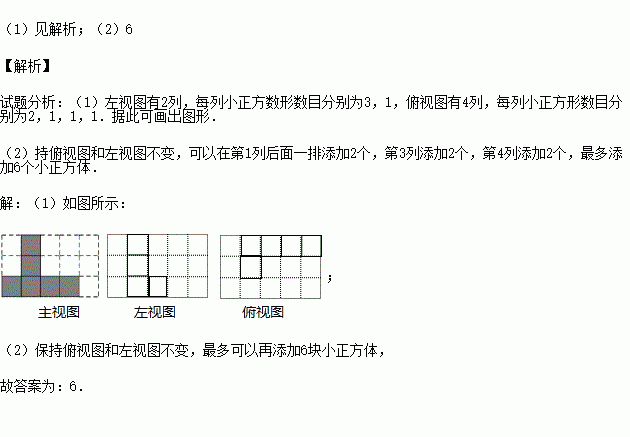 (2)如果在这个几何体上再添加一些小正方体,并保持俯视图和左视图不变,最多可以再添加 块小正方体.