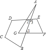 分析:根据四边形的内角和是360°,可求∠C+∠B+∠D+∠2=360°,∠1+∠3+∠E+∠F=360°.又由三角形的一个外角等于与它不相邻的两个内角的和,得∠1=∠A+∠G,而∠2+∠3=180°,从而求出所求的角的和.