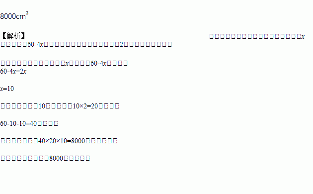 如图①是边长为60cm的正方形纸板,裁掉阴影部分后将其折叠成如图②所示的有盖的长方体盒子,已知该长方体的底面宽是高的2倍,请算一算长方体的体积是多少?