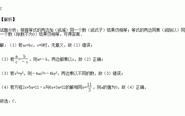 (3)若x2=y2,则﹣4ax2=﹣4by2;