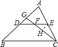 分析:过点E作EH∥AD交CG于点H,根据F是DE的中点,利用平行线分线段成比例定理可以得到EH=GD,再根据DE是△ABC的中位线,得到EH是△ACG的中位线,求出EH与AG的比值,从而AG:GD也可求出.